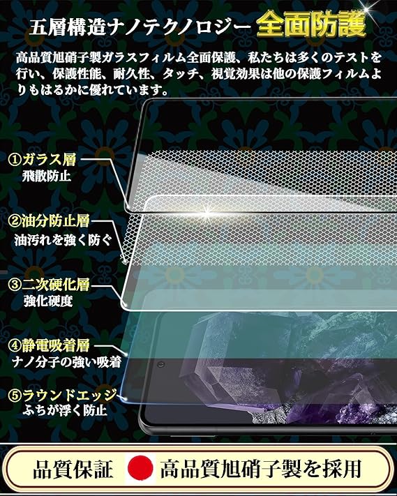 【最強硬度9H・飛散防止】ガラスフィルム一般的な液晶保護フィルムの約6倍の強度。衝撃は強化ガラスに吸収されますので、ディスプレイにかかる衝撃負荷を軽減し。ディスプレイが