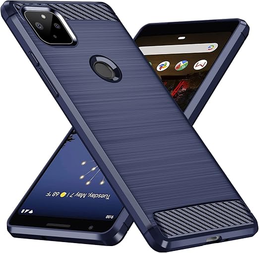 PNEWQN Google Pixel 5 ケース 耐衝撃 シリコン 薄型 軽量 炭素繊維テクスチャー シリコン すり傷防止 脱着簡単 TPU 耐久 グーグル ピクセル5 ケース対応 保護カバー 指紋防止 滑り止め 耐久 一体型 シンプル 人気 携帯カバー 青 WY25-221
