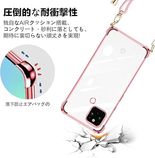PAILAIMEN Google Pixel 5a ケース クリア ショルダー耐衝撃カバー ストラップ ピクセル 5aスマホケース Pixel5a サムスン 肩掛け 斜めかけ 縄掛けケース透明 TPU ストラップ付き 薄型 軽量 紐付き 取り外し可能 携帯ケース(ローズゴールド)1