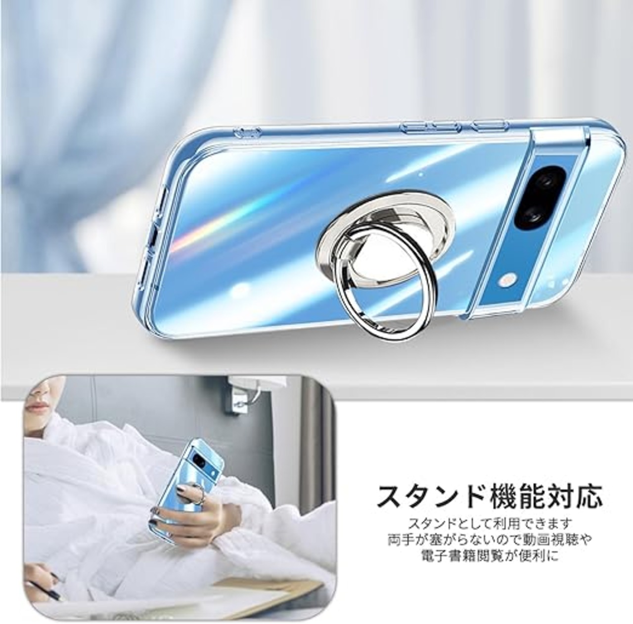 Google Pixel 8A ケース クリア リング付き TPU ピクセル8a カバー 専用 黄変防止 耐衝撃 薄型 ケース 車載ホルダー対応 ストラップホール付き 滑り止め 落下防止1