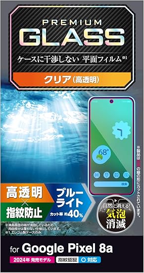 エレコム Google Pixel 8a ガラスフィルム グレア 光沢 ブルーライトカット 指紋認証 対応 指紋防止 割れない 硬度10H 傷がつきにくい なめらか 気泡ゼロ 飛散防止設計 貼り直し可能 自己吸着 PM-P241FLGGBL1