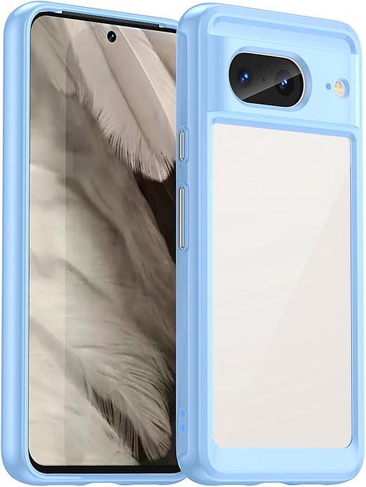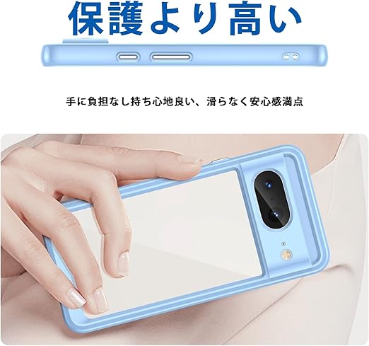 Google Pixel 8用 ケース クリア 耐衝撃 PC背面+TPU 柔軟 防指紋 米軍MIL規格 ストラップホール付き ワイヤレス充電対応 透明 薄型 黄変防止 滑り防止 (青) 15-Pixel8-051