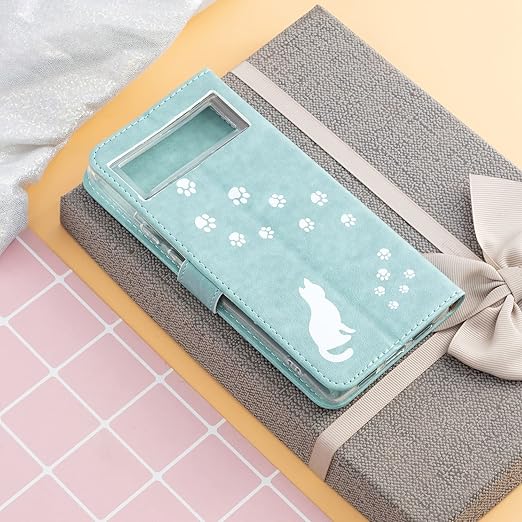 Google pixel 6ケース 6.4inch 手帳型 グーグル ピクセル 6ケース カバー 6.4インチ 手帳型 可愛い動物柄 ストラップ付き 猫の動物 可愛いストラップ付き スタンド機能付き 財布型 スマホカバー マグネット付き カード収納 耐衝撃 全面保護 (Google pixel 6, A5-グリーン)1