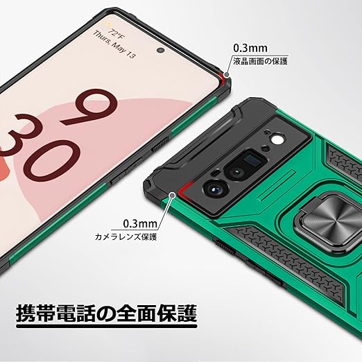 Google Pixel 6 pro ケースリング 耐衝撃 衝撃吸収 Pixel 6 pro 携帯カバー 米軍MIL規格取得 TPU+PC 指紋防止 車載ホルダー対応 スタンド機能 防塵 薄型 軽量 落下防止 擦り傷防止 レンズ保護 ?86-APixel6p-051