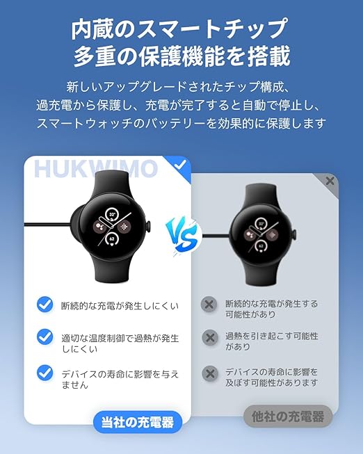 【広範な互換性】:この充電器はGoogle Pixel Watch2に専用に設計されており、USB Type-Aコネクタを使用しており、デバイスとの完全な互換性を確保しています。コネクタの合わせる必要がないので、充電が簡単です。