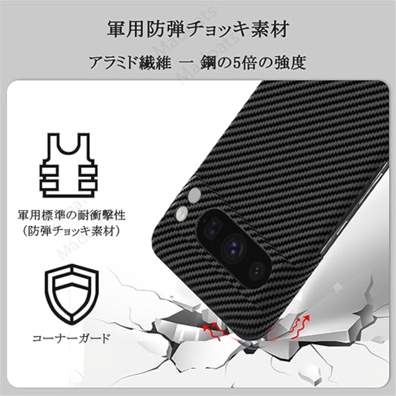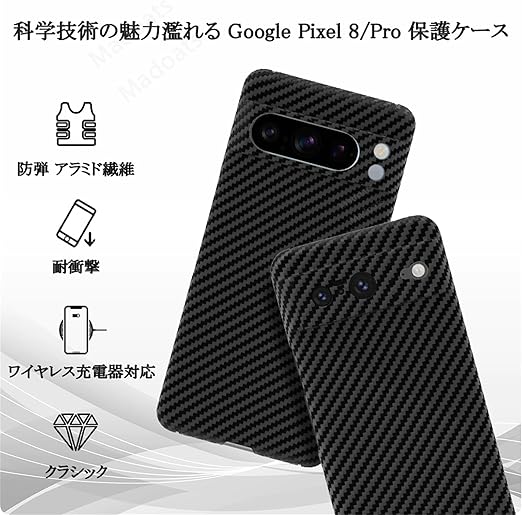 【アラミド繊維・超頑丈】素材:100%アラミド繊維。アラミド繊維とは、鋼よりも5倍強いが、密度が鋼の五分の一しかないハイテク素材です。軍用素材、ボディアーマー(防弾チョッキ)、スーパーカー、飛行機、宇宙船、F1マシンなどによく使われています。Google Pixel 8 Proアラミド繊維保護ケースは科学技術の魅力に溢れ、シンプルでモダンなデザインに戻します。