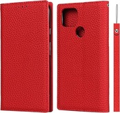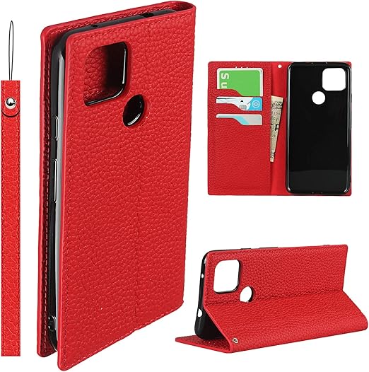 Google pixel 4a 5G ケース 【5Gモデル対応】 pixel4a 5G ケース ピクセル 4a 5G カバー グーグル pixel4a (5G) カバー SoftBank SIMフリー 全対応 ピクセル4a 5G 手帳型 case 【iCoverCase】 内蔵マグネット ベルトなし スマホケース カード入れ付き スタンド機能 本革 柔らかい 本皮 ライチ模様 スプラット同梱 レッド1