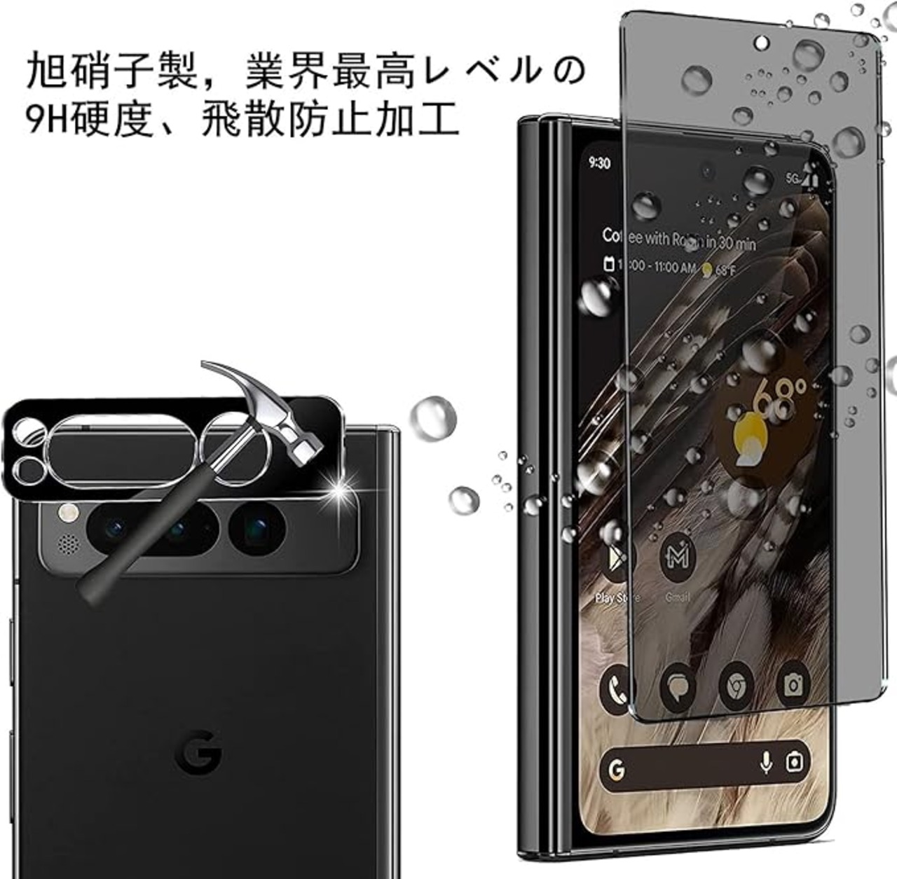 【2+2枚セット】【覗き見防止 】Google Pixel Flod ガラスフィルム 前面保護専用 グーグルピクセル Flod 覗き見防止強化ガラス プライバシー保護 旭硝子製 ケースに干渉せず 気泡ゼロ 撥油性 貼付け簡単 全面保護フィルム1