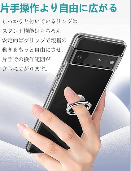 Google Pixel 6 Pro ケース クリア リング付き グーグル ピクセル6 Pro スマホケース 全透明 ソフトTPU 軽量 薄型 指紋防止 黄変防止 超耐衝撃 レンズ保護 傷つけ防止 さらさら肌触 Pixel 6 Pro 専用保護カバー (クリア)1
