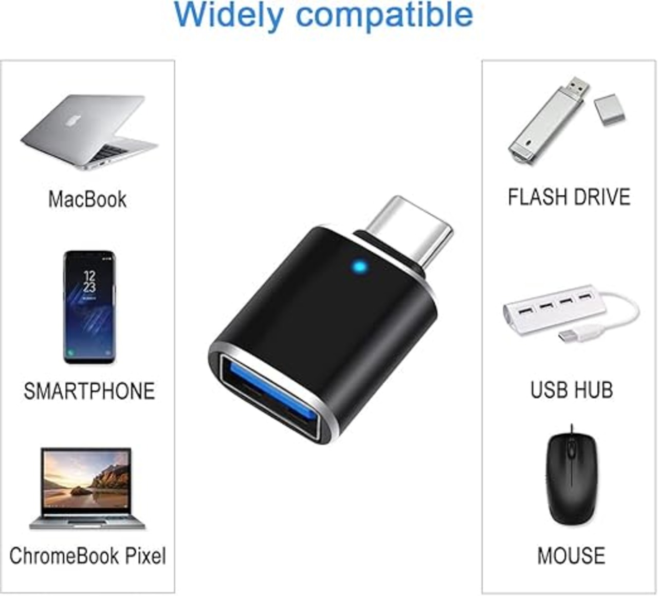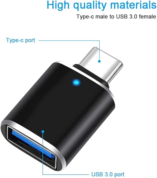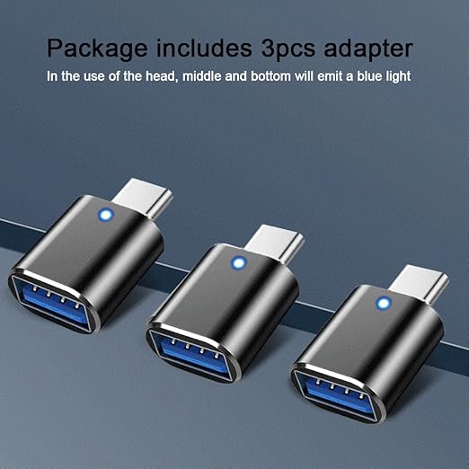 OTGアダプター:TYPE-Cオス-USB3.0メス変換アダプターはあらゆるUSB-C周辺機器をUSB Aデバイスに簡単に接続することができます。使用時にアダプターがブルーライトで発光し、目に優しいです。データ転送速度は最大5Gbpsで、あなたの生活をより快適にします。