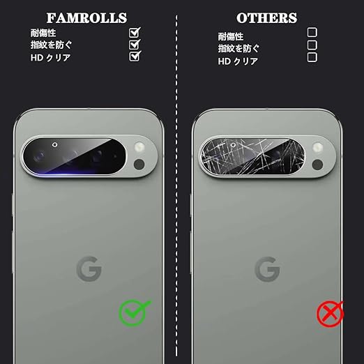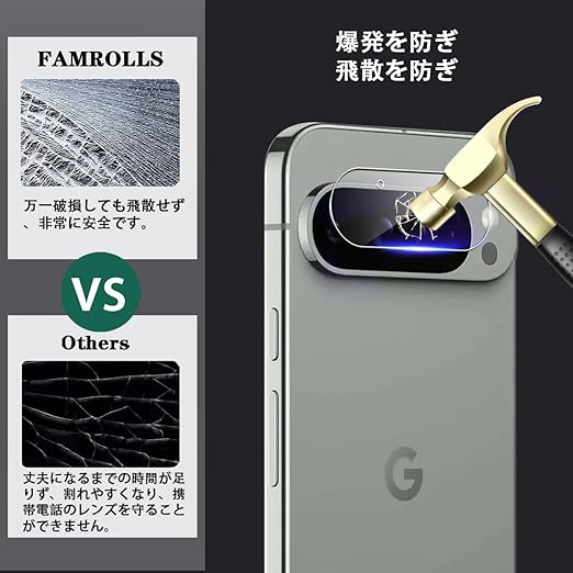 【✔対応機種】 Google Pixel 9 Pro 専用。素材に日本製の旭硝子を採用。【2枚セット】2枚 用 グーグルピクセル9 Pro 強化カメラフィルム【✔FAMROLLS正規品】スマホの周辺アクセサリーを長年手掛けるFAMROLLSメーカーの人気スマホカメラフィルムです。安心してご注文ください。
