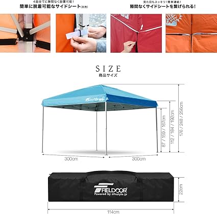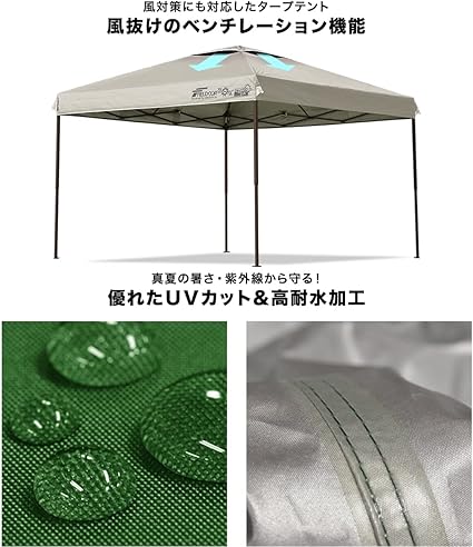 FIELDOOR 組立て簡単!! 【2.5×2.5m 】【3.0×3.0m】【3.0×2.0m】 ワンタッチタープテント 【強化版】 G03 屋根柱が8本に増強 別売りオプションパーツが豊富 高耐水加工 シルバーコーティング UVカットコーティング11