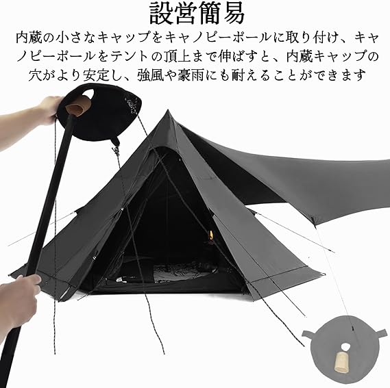 2.⛺【ユニークな特徴】 ①タープ 連結アダプター には、内部に小さな帽子が組み込まれています。テントポールを内部の小さな帽子に装