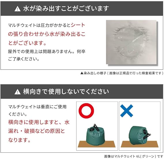 ■商品特徴</br>・レジャーやアウトドアで使用できる注水タイプのウェイトです!</br>・直径約15mm~55mmまでのポールや支柱に対応!</br>・取っ手付きで持ち運び・設置が簡単!</br>・注水式なのでコンパクト!使用後も折りたたんで収納できます。</br>・足に2個つけることで、大型テントなどもしっかり固定できます!