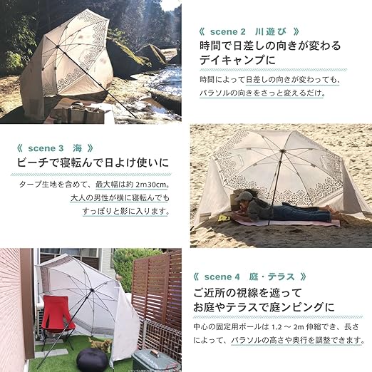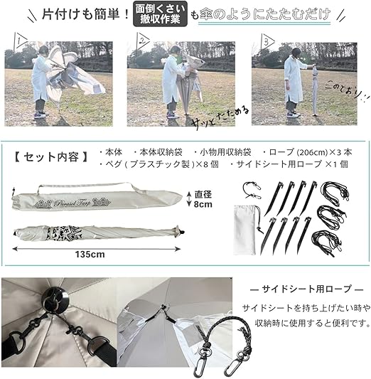 本格的なタープやテントよりも気軽に使える、傘のようにパッと開くだけの簡単タープ