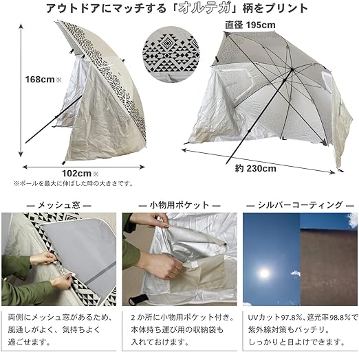 SPICE OF LIFE(スパイス) 10秒で日影 パラソルタープ オルテガ 直径195cm 日よけ 傘型 通気窓 ベージュ 収納袋・ペグ・ロープ付き LSLS221011
