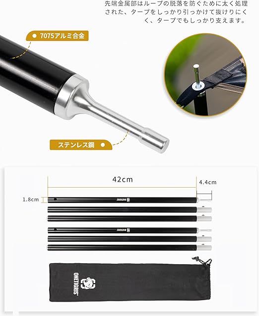 OneTigrisアルミポール テント.タープ設営用 3節/4節連結 2本入り 組立 長さ調整簡単 キャンプギア 125cm〜160cm11