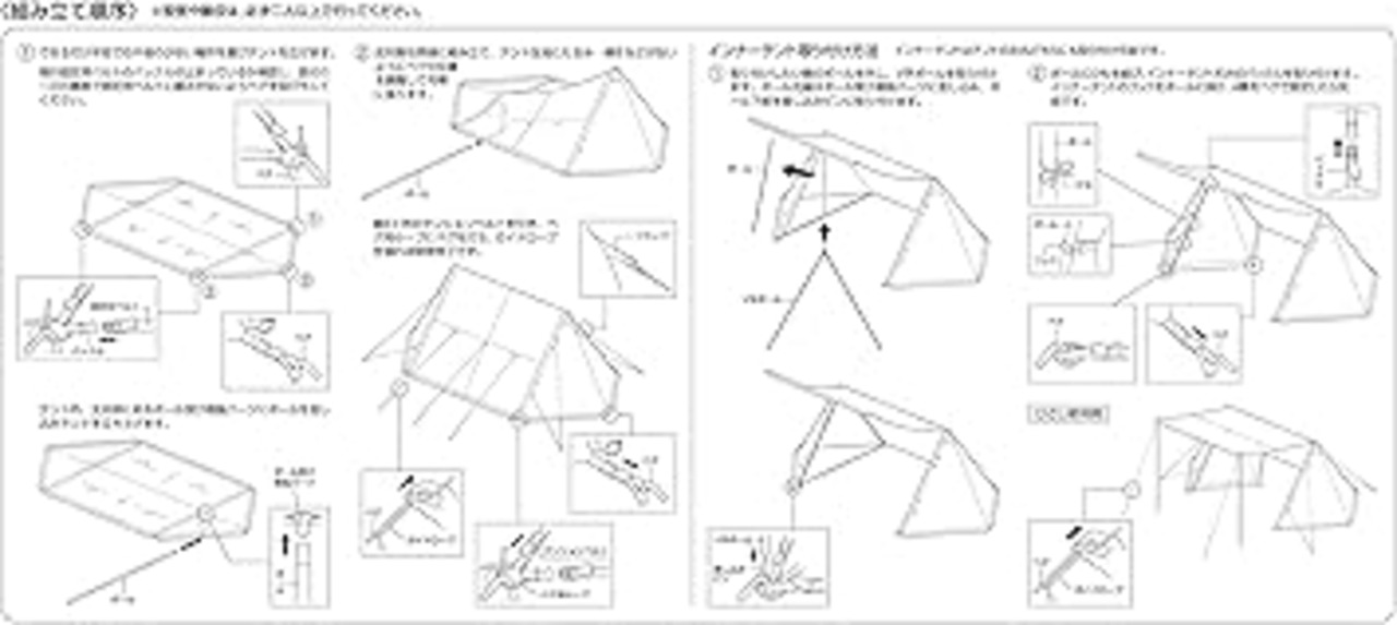 仕様/その他:付属品:ひさし用ポール4本、ガイドロープ14本、ペグ34本、ハンマー1本、ポール用収納袋1枚、ペグ用収納袋1枚、キャリーバッグ1枚