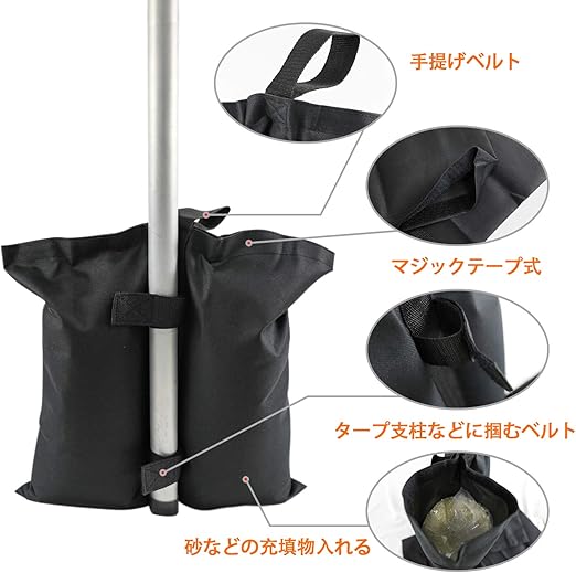 【 デザイン】 ウエイトバッグは、頑丈なストラップバックルシステムが装備されています、テント やタープポールを簡単に掴める。