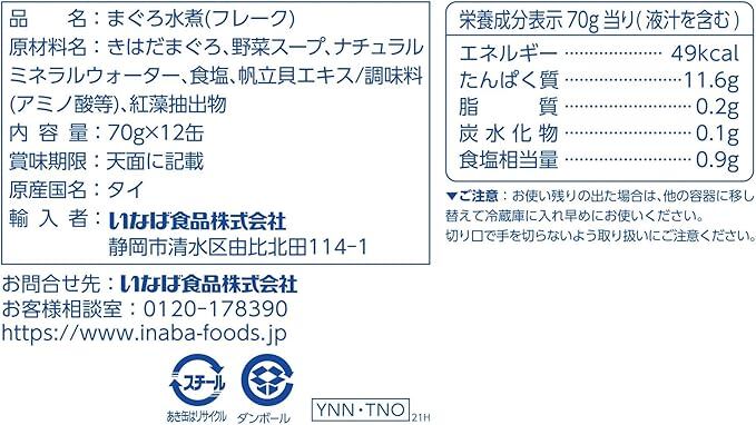 いなば食品 いなば ライトツナスーパーノンオイル フレーク 70g×12缶入1