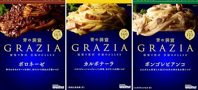 青の洞窟GRAZIAパスタソース 全種類セット(青の洞窟GRAZIAボロネーゼ、青の洞窟GRAZIAカルボナーラ、青の洞窟GRAZIAボンゴレビアンコ)