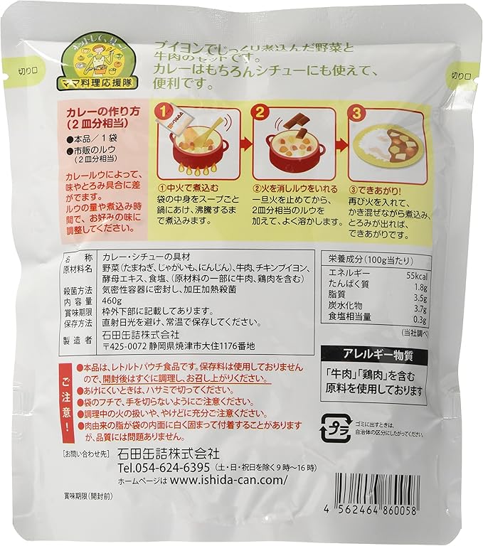 石田缶詰 ママカレーの具(ビーフ) 460g×4袋1
