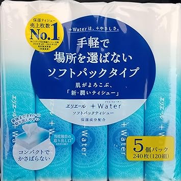 【ソフトパックタイプ】日本製 エリエール プラスウォーター 保湿成分配合 5個パック240枚(120組) ホワイト1