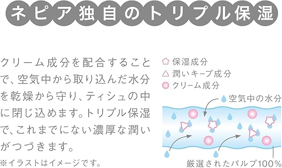 潤い続く濃圧保湿ティッシュ ●独自の「トリプル保湿」に「植物由来スクワラン」を配合