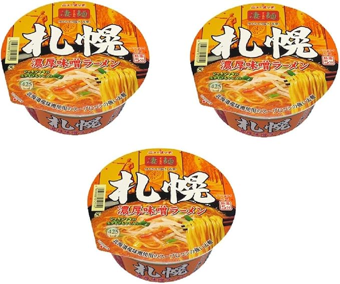 北海道限定 ヤマダイ ニュータッチ 凄麺 すごめん ゆでたての旨さ、再現! 札幌 濃厚味噌ラーメン シャキシャキの生タイプもやし入り 熱湯5分 ノンフライ太麺 北海道産味噌使用のスープにコシの強い太麺 即席カップめん 162gx3個 食べ試しセット ラーメン 麺 カップ麺1