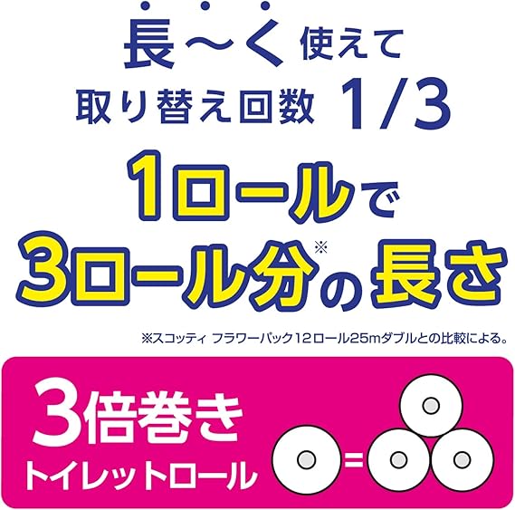 スコッティ フラワーパック 3倍長持ち トイレット75mダブル ホワイト 12ロール1