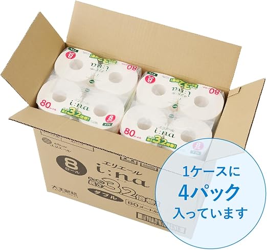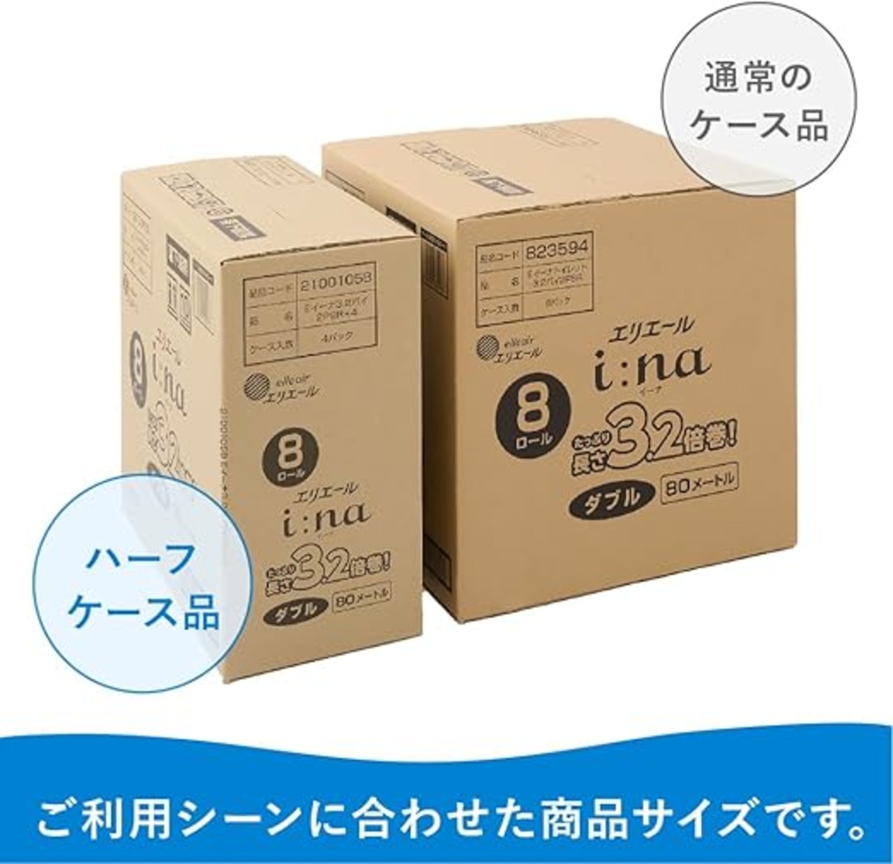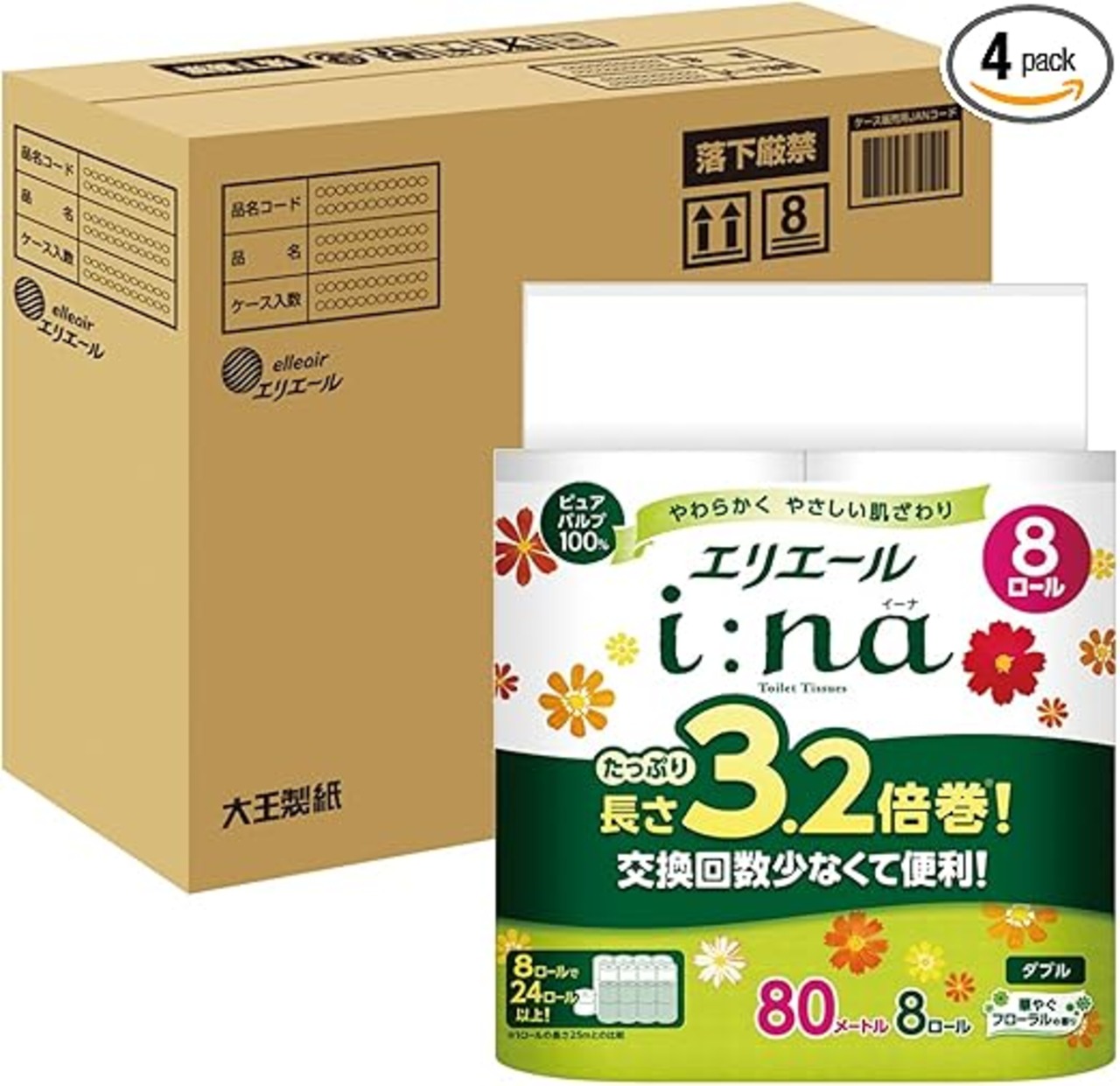 エリエール トイレットペーパー i:na(イーナ) 3.2倍巻き 80m×32ロール (8ロール×4パック) ダブル パルプ100% 華やかなフローラルの香り 【ハーフケース】1