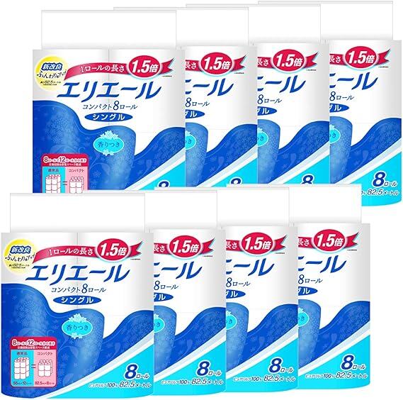 エリエール トイレットペーパー 1.5倍巻き 82.5m×64ロール(8ロール×8パック) シングル パルプ100% リラックス感のある香り【ケース販売 】1