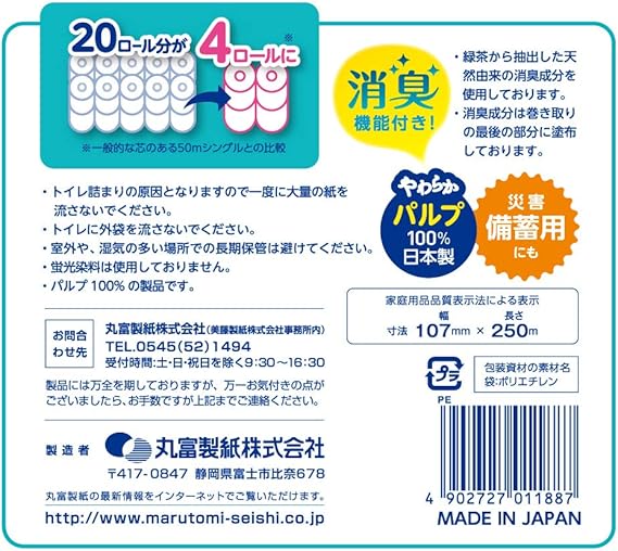 芯なしで消臭機能付き(天然緑茶成分配合)