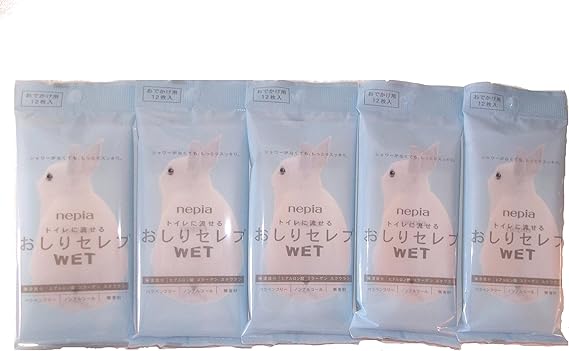 Nikitea ネピア おしりセレブ 【5パックセット】 ウエットタイプのトイレットペーパーおでかけ・携帯用 12枚×5パック1