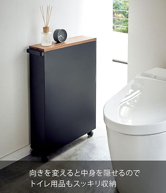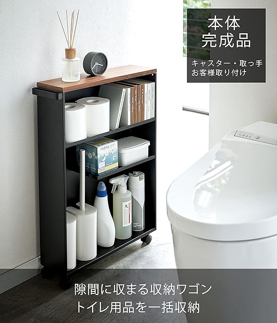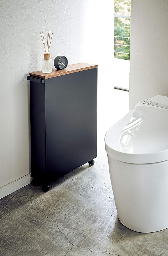 山崎実業(Yamazaki) ハンドル付き スリム トイレラック ブラック 約W13XD47.5XH68.5cm タワー【本体完成品:キャスターのみお客様取り付け 】 トイレットペーパーホルダー 43071