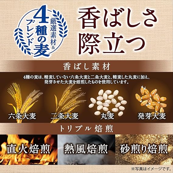 4種の麦と厳選素材のブレンド麦茶 六条大麦、二条大麦、発芽大麦、丸麦を使用し、3つの異なる焙煎で麦の香ばしさを引き立てました。