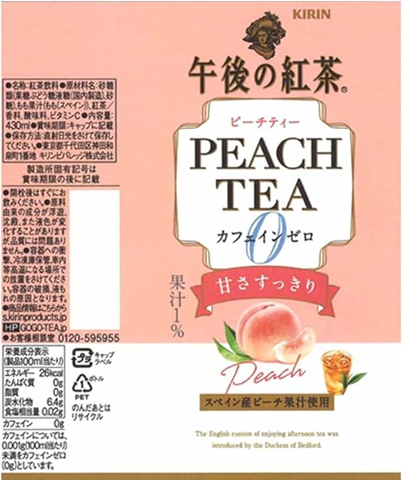キリン 午後の紅茶 カフェインゼロ ピーチティー 430ml 24本 ペットボトル ノンカフェイン デカフェ カフェインレス