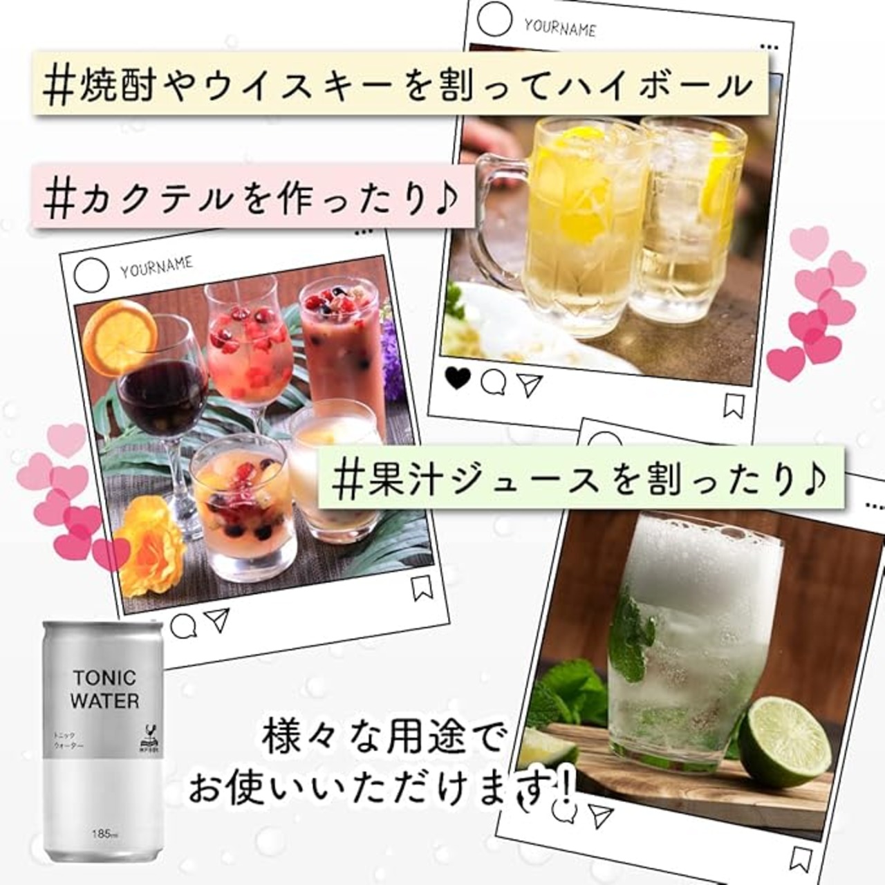 そのままでも、定番のジントニックやラム、ウォッカ等の割り材にも