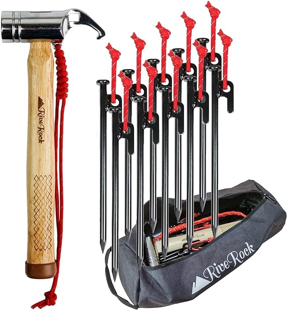 RiveRock (リバロック) ペグハンマー 収納袋 夜光ロープ 強靭 テント設営 タープ設営 (ハンマー/スチールペグ10本/収納袋)