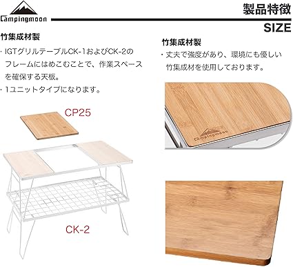 キャンピングムーン(CAMPING MOON) IGT用 グリルテーブル CK-1 センターボード 竹 天板 P251