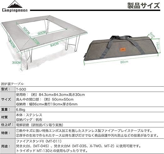 キャンピングムーン(CAMPING MOON) マルチ ファイアープレイステーブル 囲炉裏テーブル アウトドアテーブル 便利のテーブルバッグ付 T-5001