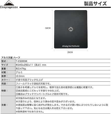 キャンピングムーン(CAMPING MOON) フィールドラック 連結用 ハーフ 天板 アルミ天板 ブラック T-2309-BK1