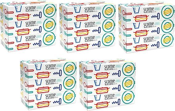 【まとめ買い】スコッティ キッチンタオル ボックス 150枚(75組) 3箱パックx5個セット1