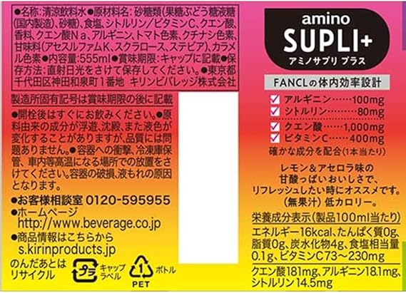 キリン×ファンケル アミノサプリ プラス 555ml 24本 ペットボトル アミノ酸飲料 スポーツドリンク1
