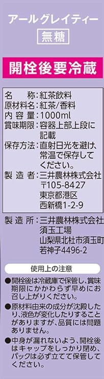 三井農林 ホワイトノーブル リキッドティー アールグレイ 1L×6箱1