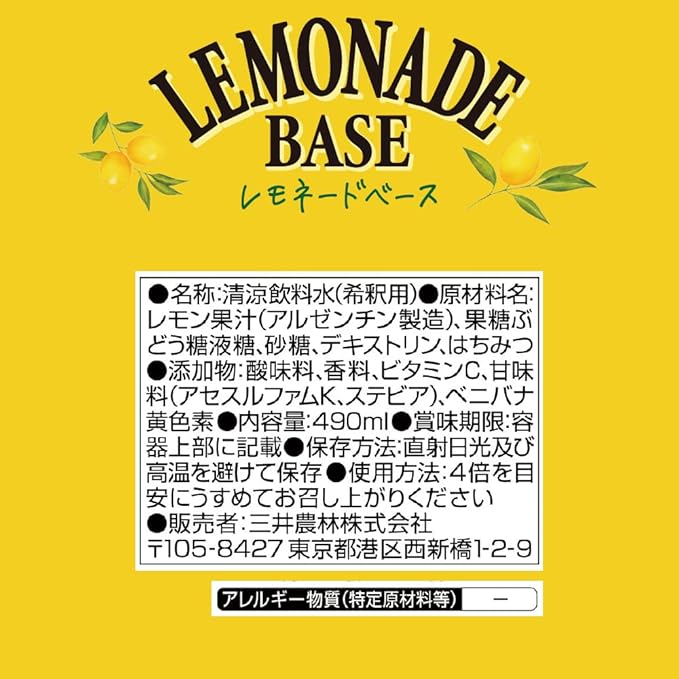 三井農林 日東紅茶 レモネードベース 490ml×3個1