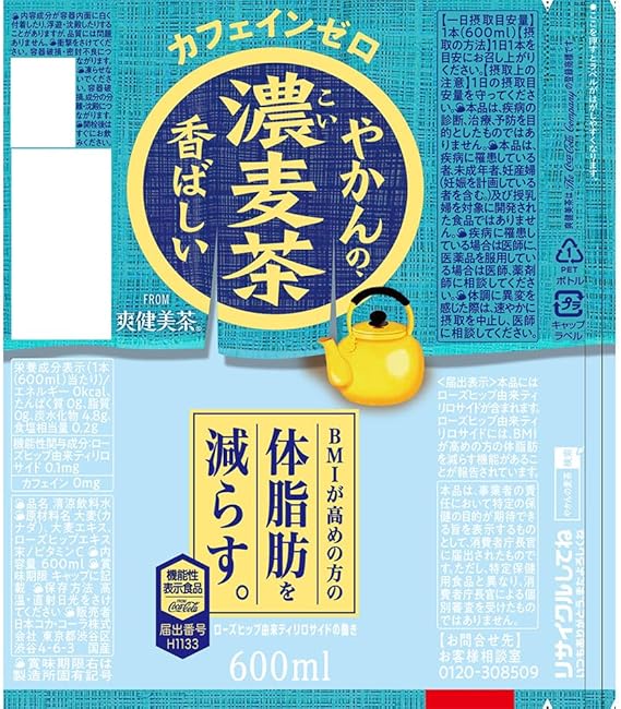 [機能性表示食品]コカ・コーラ やかんの濃麦茶 from 爽健美茶 600ml PET ×24本 [ノンカフェイン]1