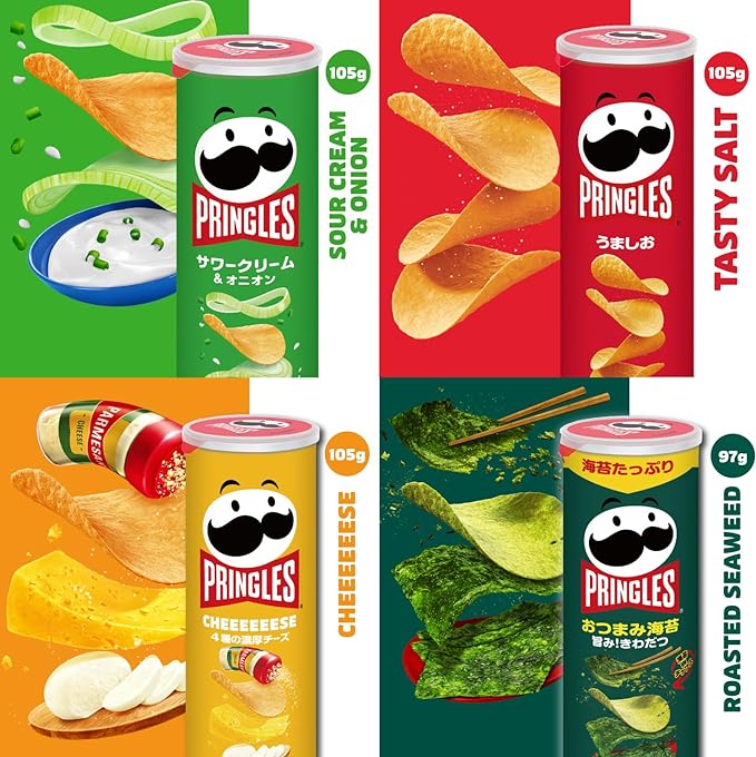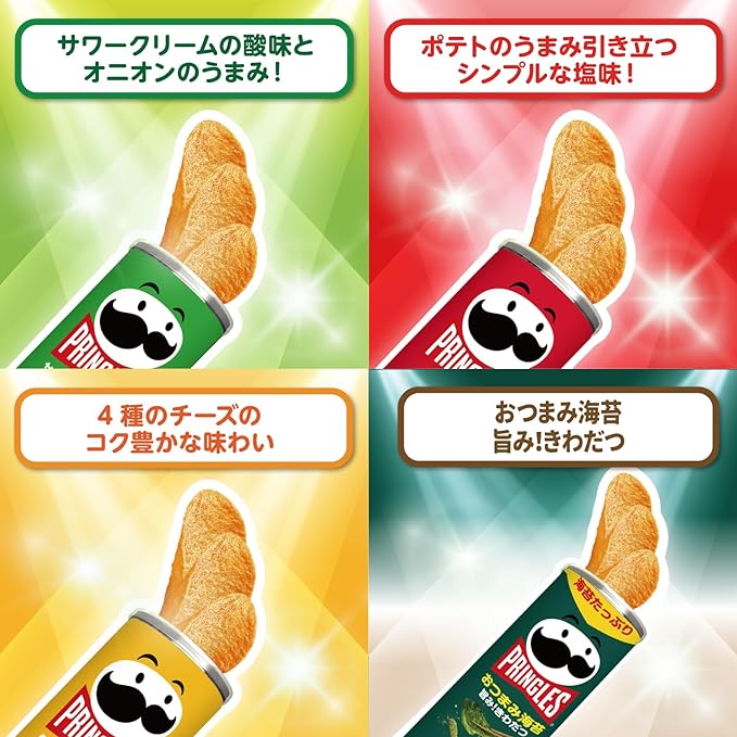【Amazon.co.jp限定】 プリングルス ケロッグ プリングルズ M缶 4種 アソートセット (うましお・サワークリームオニオン・CHEEEEEEESE・おつまみ海苔) ※時期によりセット内容に変更あり 4個 (x 2)1