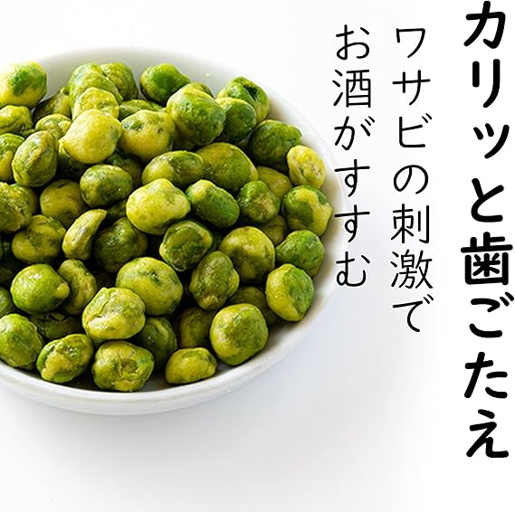 【これぞ大人のお菓子】「えんどう豆」に、たっぷりワサビで味つけた、素朴でどこか懐かしい味わいの豆菓子です。鼻にダイレクトにぬけるわさびの刺激を楽しんでいただけます。