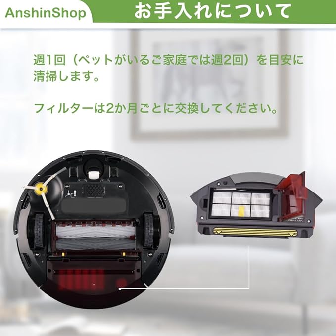 対応機種:ルンバ870 / 871 / 875 / 876 / 878 / 880 / 885 / 890 / 891 / 892 / 893 / 960 / 961 / 980 / 985などのルンバ800 / 900シリーズ全般